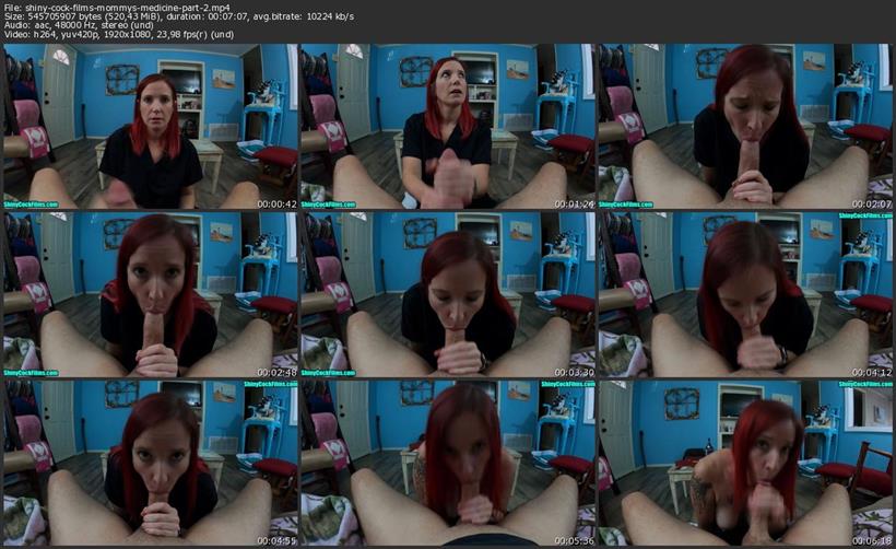 Mommy’s Healing Hands, Part 2 - 10:37 Mom knows her son dreams wildly and she wants his hand to heal quickly. She has arranged for dad to stay in son’s bedroom, and she’ll stay in her bed with her son to be close to care for him and his broken dominant hand. She feels so bad that it’s her fault that he broke it. She’s ready to climb into bed when her son starts making her feel terrible again that it’s her fault his hand is broken. Knowing that his mom will be staying so closely to him makes his cock hard. He tells his mom he wants her to take care of the situation again. She hesitates as dad is right down the hall. He finally talks her into taking her top off and stroking her again. But this isn’t enough for him. He tells her that things will move along faster if she uses her mouth. He doesn’t stop making her feel guilty until he finally convinces her to blow him. Right there where she lays with his father! Mom gives her son a good sucking with her bra off until he explodes inside her mouth. Jane Cane, Wade Cane, Shiny Cock Films, mom, mother, mommy, milf, blowjob, blow job, big dick, swallow, swallowing, cum swallowing
